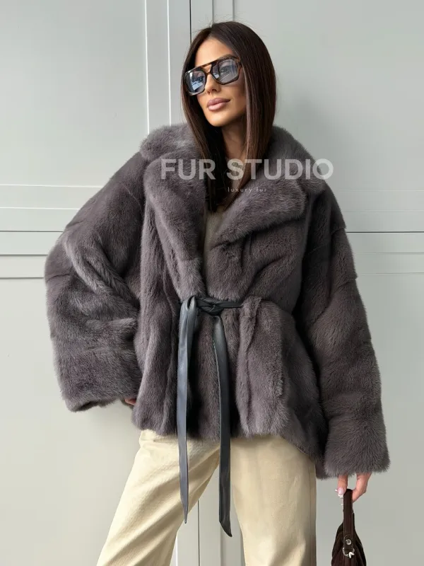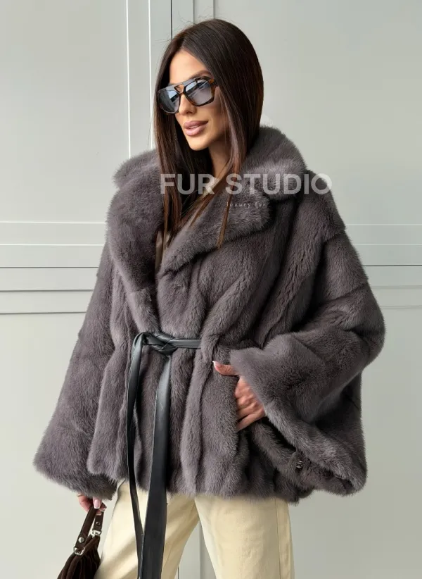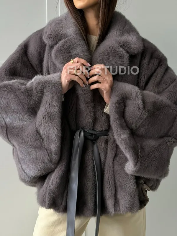Мех данной шубы аукционная норка, цвет серый. Предлагается в размерах от 40 до 62 (oversize). Длина модели 60-65 см, что выгодно подчеркивает фигуру девушек. Эта модель идеально подойдет для девушек и женщин, предпочитающих роскошные натуральные меха.