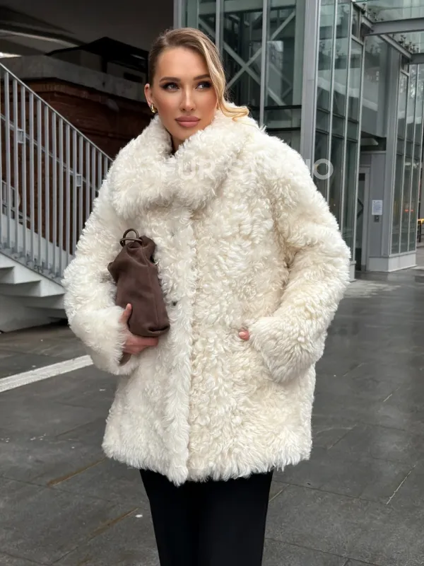 Белая шубка из тиградо. Модель предлагается в размерах от 42 до 48. Оптимальная длина моделей 70-75 см подчеркивает линии вашей фигуры. Эта дубленка станет неотъемлемой частью гардероба для тех, кто предпочитает роскошь и утонченность натуральной кожи.