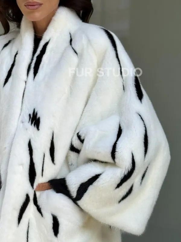 Белый норковый полушубок с рисунком 102266