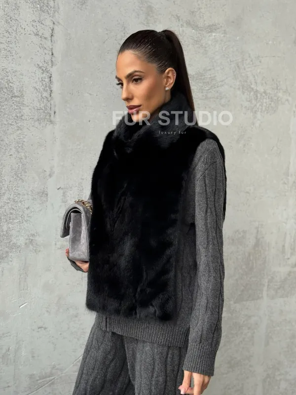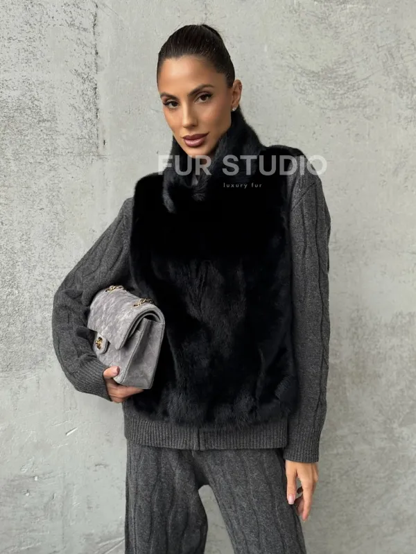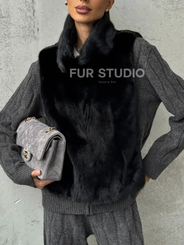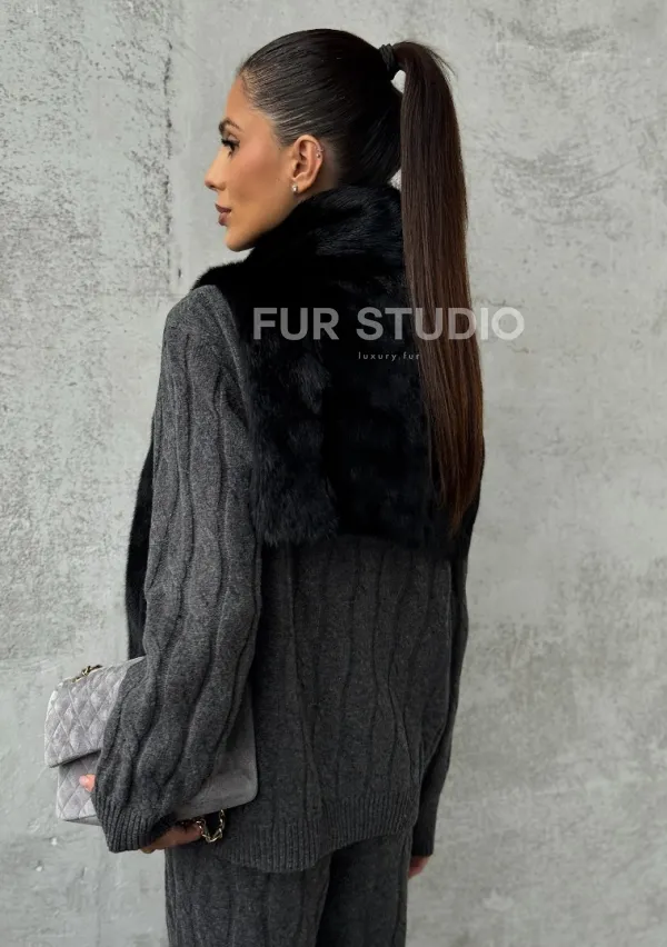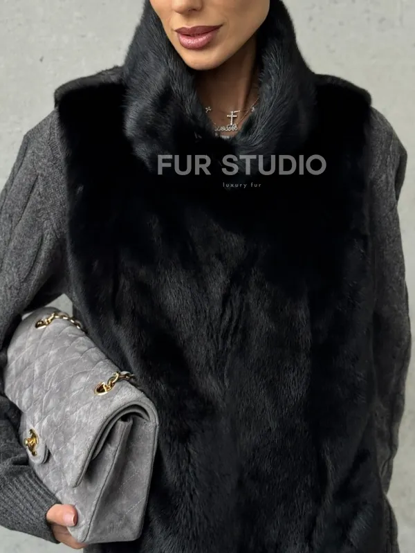 Черная манишка из меха норки 102424