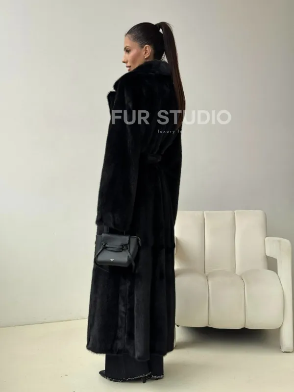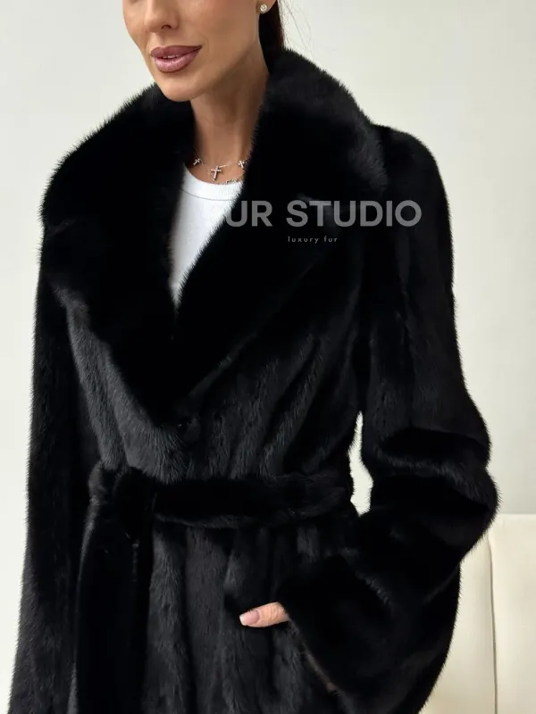 Черная норковая шуба с поясом доступна для покупки в нашем шоуруме Furs Studio в . У нас так же есть доставка во все города России. Добавьте немного роскоши в свой гардероб с этой шубой, которая будет служить вам многие годы.