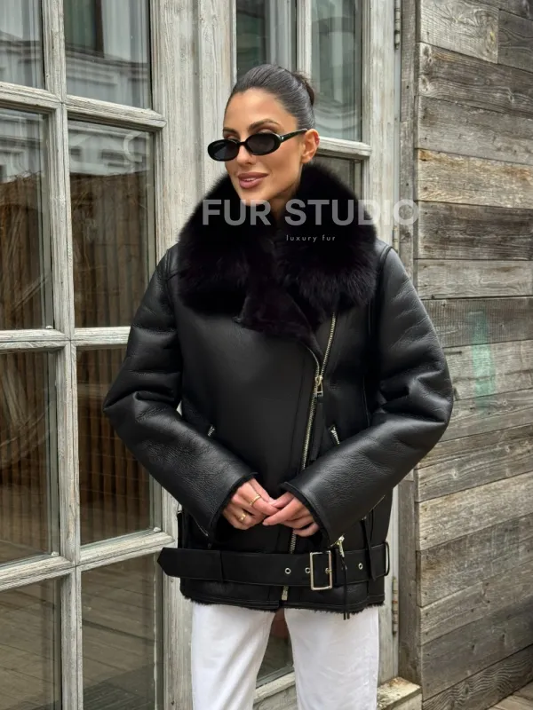 Дубленка из натуральной овчины с мехом песца 100679