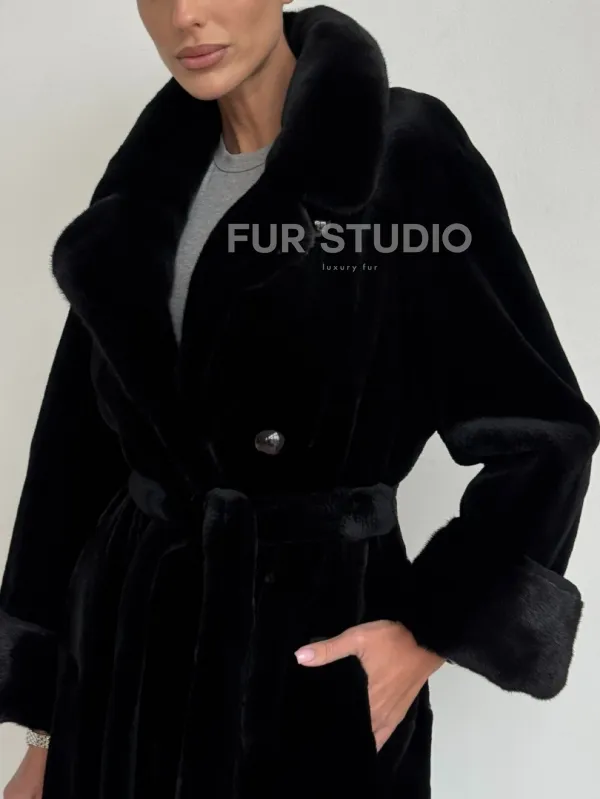 Элитная шуба из меха стриженой черной норки 101397
