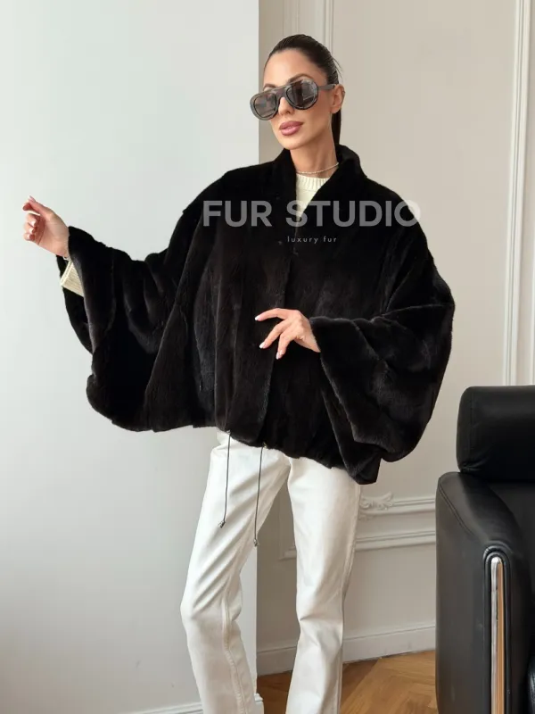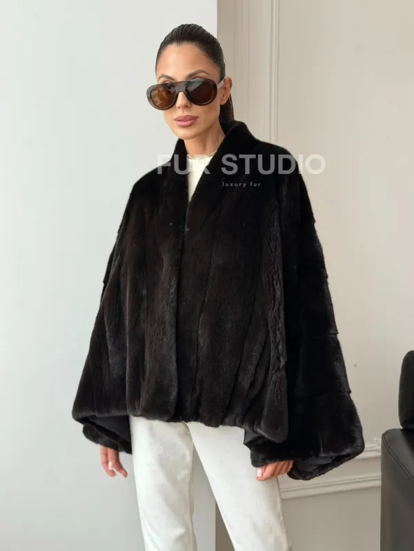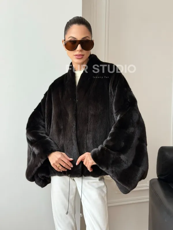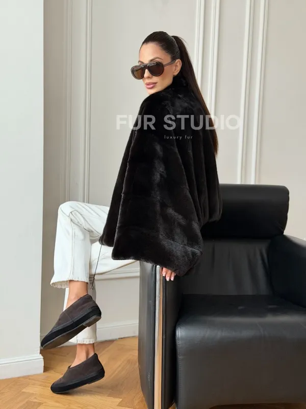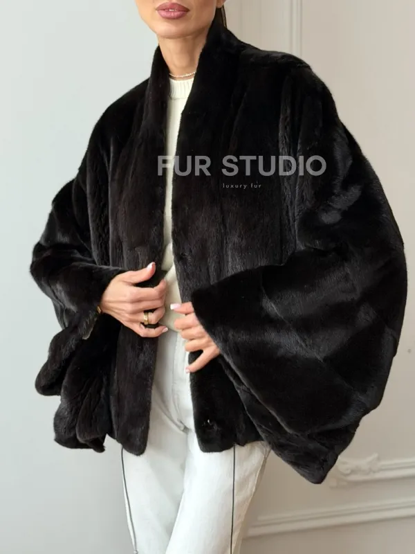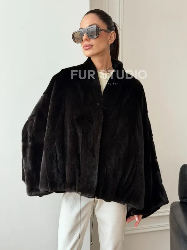Короткая норковая шуба - пончо 102724