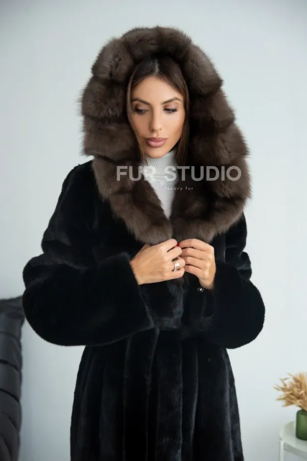 Норка BLACKGLAMA, пластины с капюшоном из меха куницы 100633