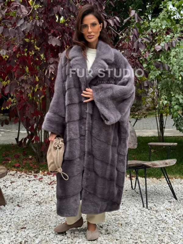Мех данной шубы аукционная норка , цвет серый. Предлагается в размерах от oversize (42 до 68). Длина модели 120-125 см, что выгодно подчеркивает фигуру девушек. Эта модель идеально подойдет для девушек и женщин, предпочитающих роскошные натуральные меха.