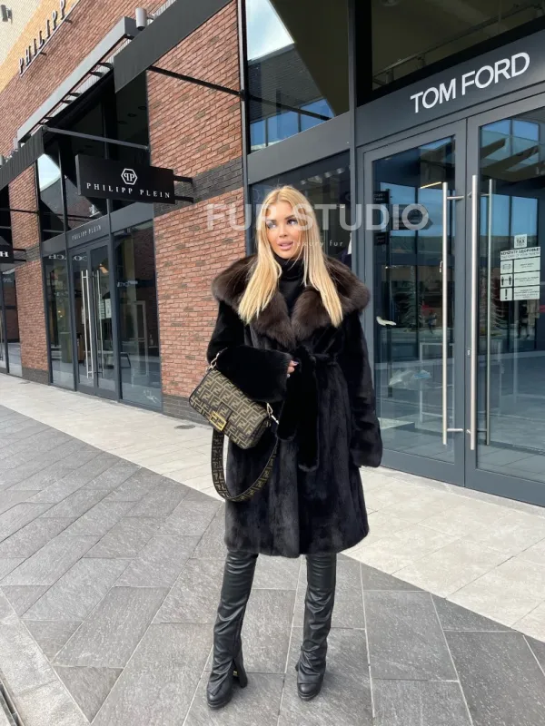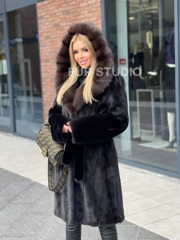 Норковая шуба с капюшоном из меха соболя седена 1/2 100101