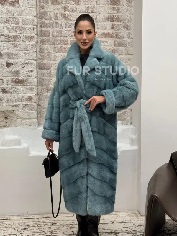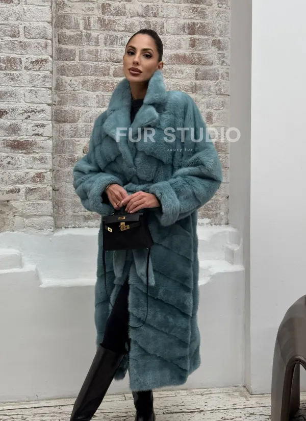 Норковая шуба в цвете TIFFANY 100932