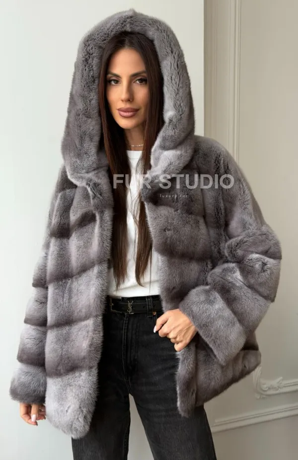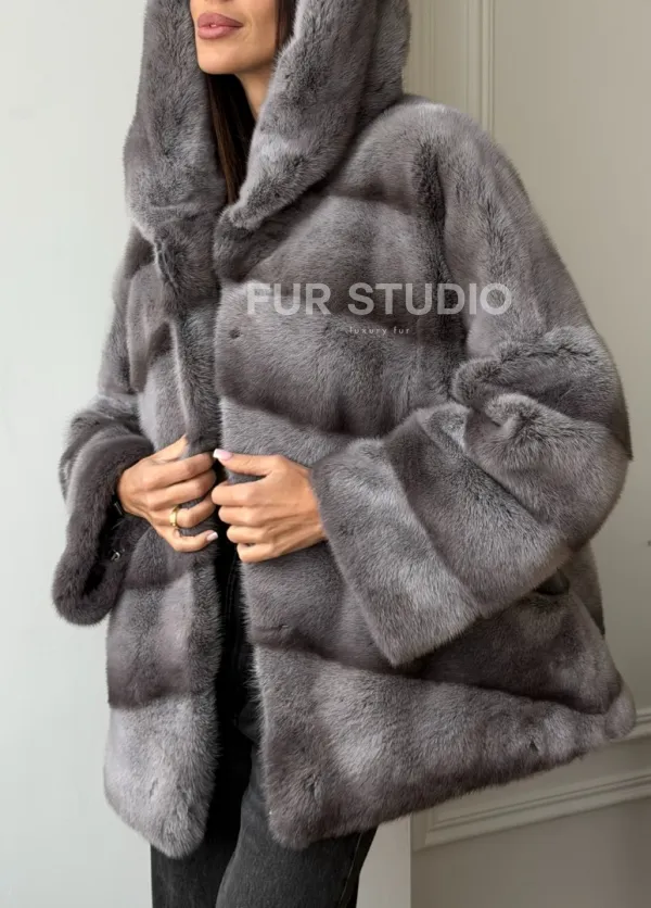 Норковый полушубок с капюшоном - цвет Platinum 102567
