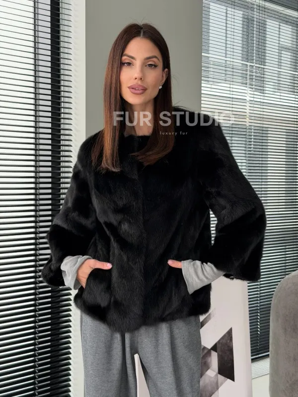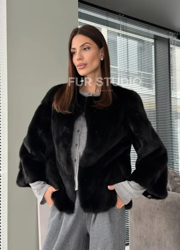 Норковый жакет - цвет черный 102913