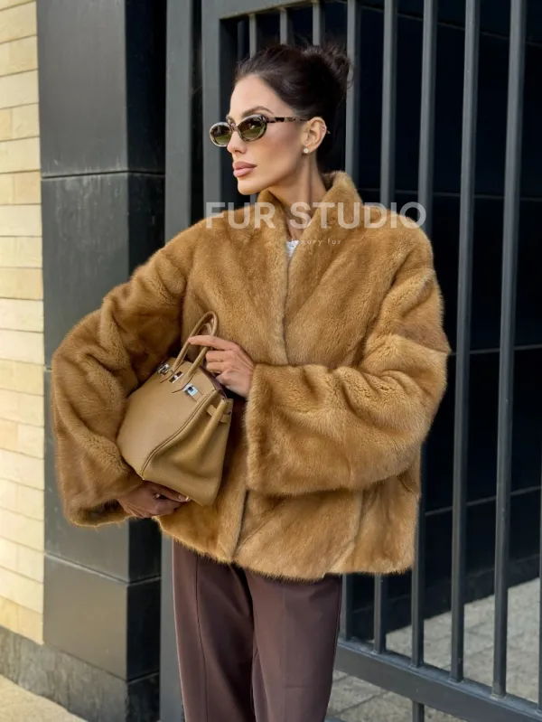 Мех данной шубы аукционная норка, цвет бежевый. Предлагается в размерах от 42 до 46. Длина модели 55-60 см, что выгодно подчеркивает фигуру девушек. Эта модель идеально подойдет для девушек и женщин, предпочитающих роскошные натуральные меха.