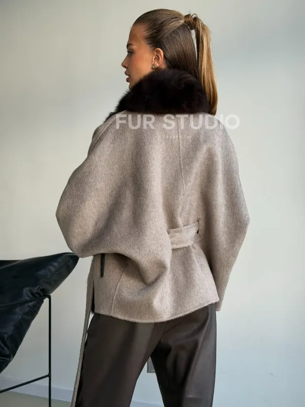 Пальто с мехом финского песца 102588
