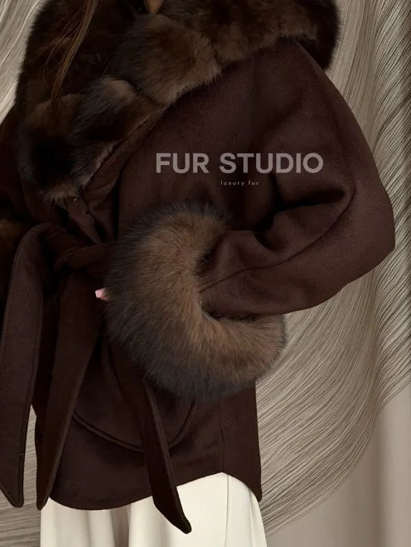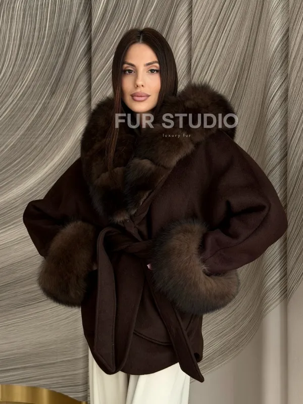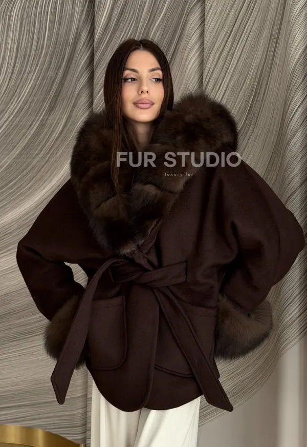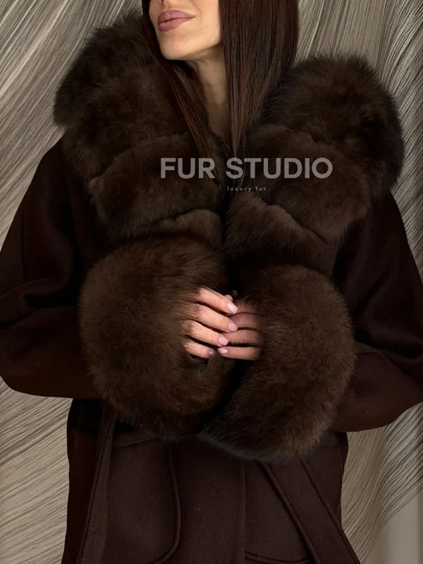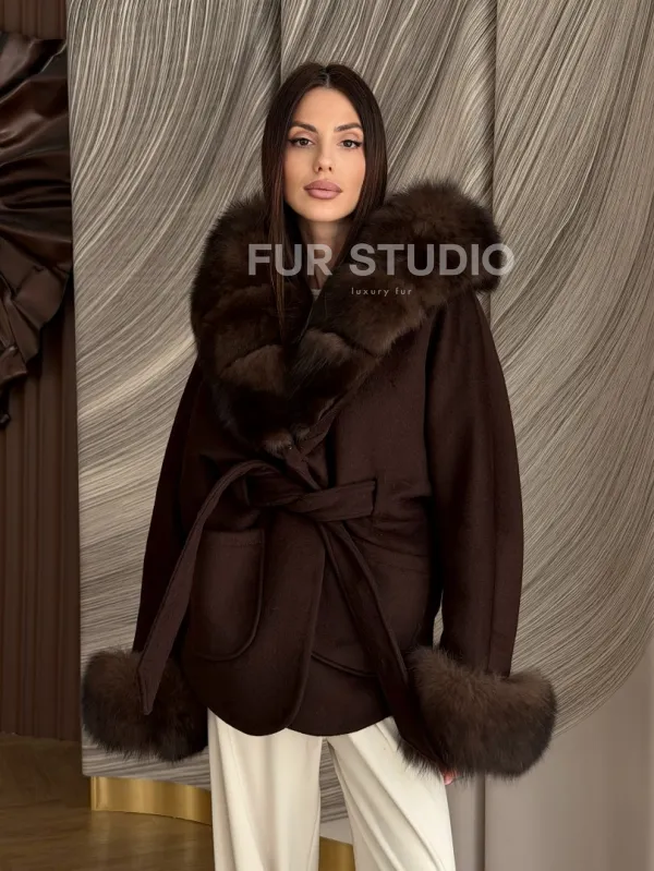 Пальто с мехом песца под соболь 102907