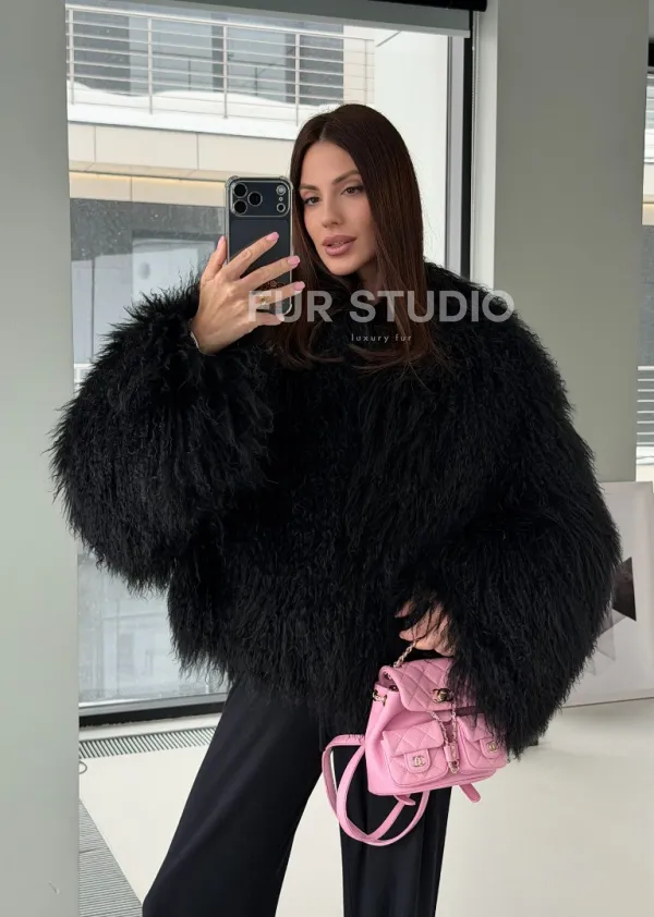 Полушубок черный из ламы 102526