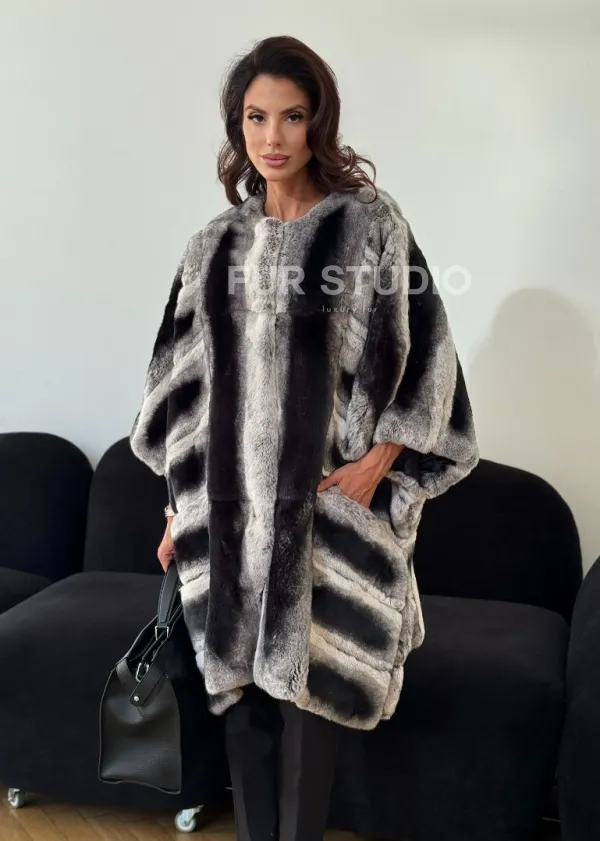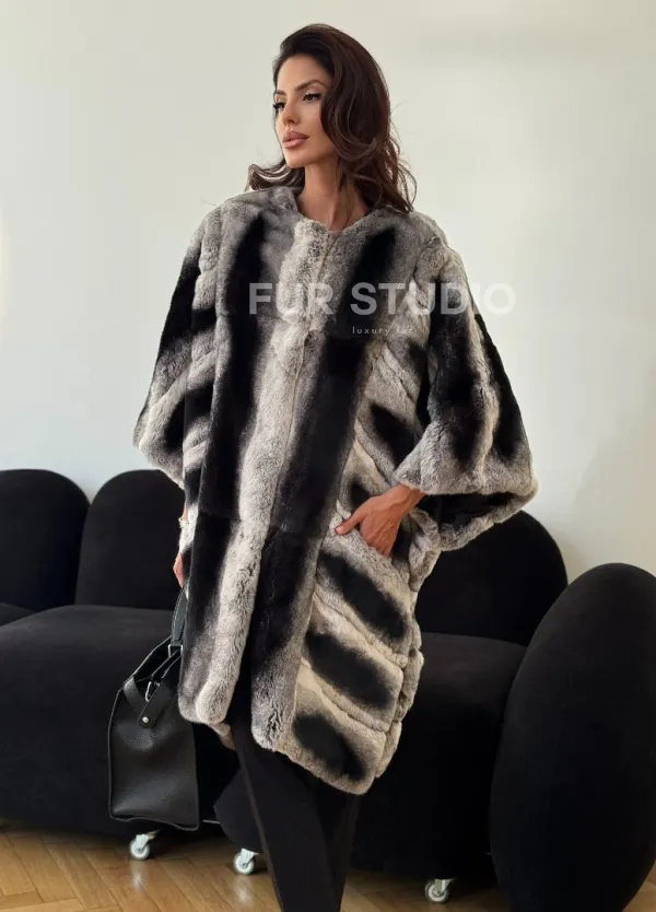 Мех данной шубы кролик рекс , цвет серый. Предлагается в размерах от 40 до 54 (oversize). Длина модели 95-100 см, что выгодно подчеркивает фигуру девушек. Эта модель идеально подойдет для девушек и женщин, предпочитающих роскошные натуральные меха.