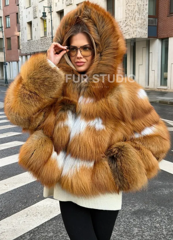 Шуба из лисы с капюшоном 102534
