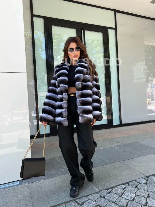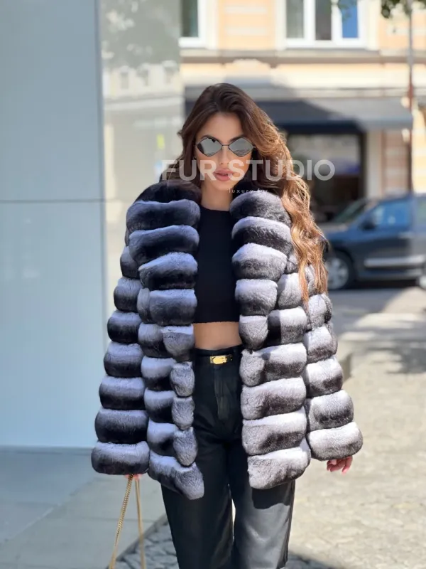 Роскошная расцветка изделия выгодно оттенит цвет волос и глаз владелицы. Модель подходит под стиль casual, сочетается с вечерним туалетом. Нежный мех удивительно теплый, что гарантирует комфортную температуру тела в любую непогоду. Купить шубу из меха шиншиллы с шалевым воротником могут женщины, которые привыкли ни в чем себе не отказывать.