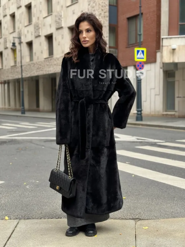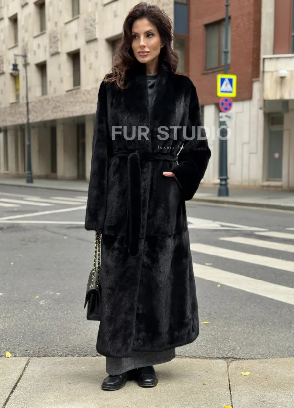 Мех данной шубы аукционная норка, цвет черный. Предлагается в размерах от 42 до 50. Длина модели 125-130 см, что выгодно подчеркивает фигуру девушек. Эта модель идеально подойдет для девушек и женщин, предпочитающих роскошные натуральные меха.