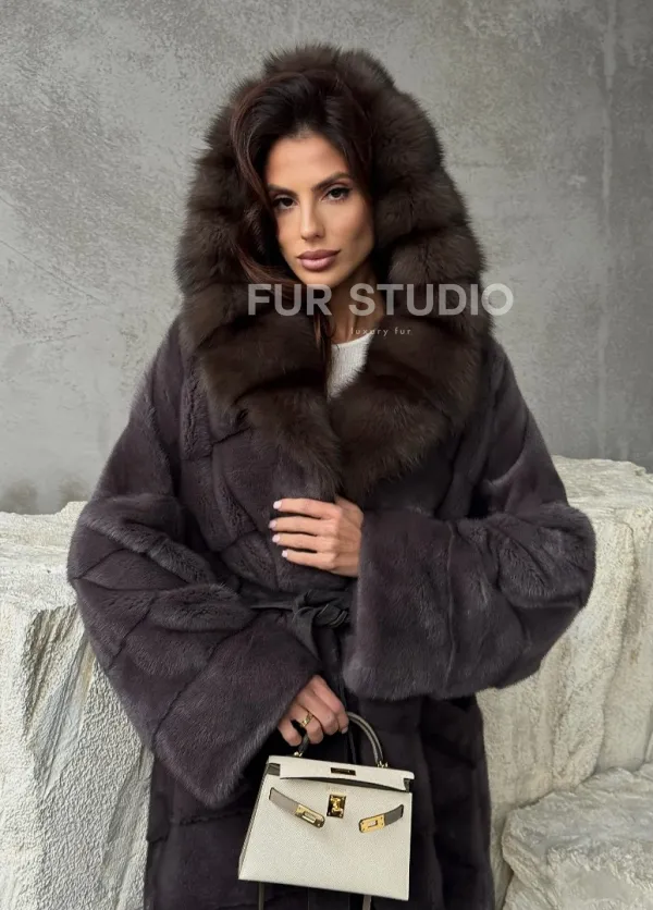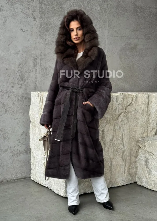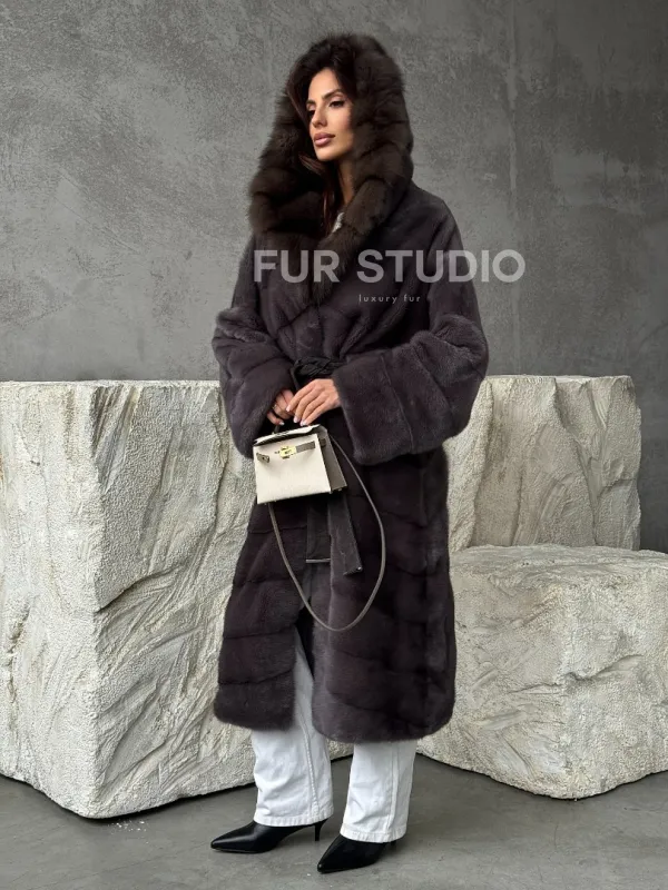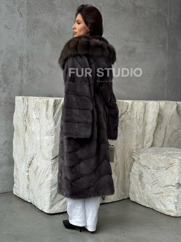 Шуба норковая графитовый ирис с капюшоном куницы доступна для покупки в нашем шоуруме Furs Studio в . У нас так же есть доставка во все города России. Добавьте немного роскоши в свой гардероб с этой шубой, которая будет служить вам многие годы.