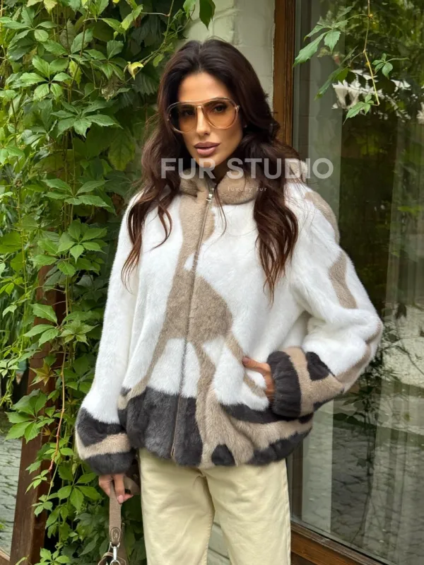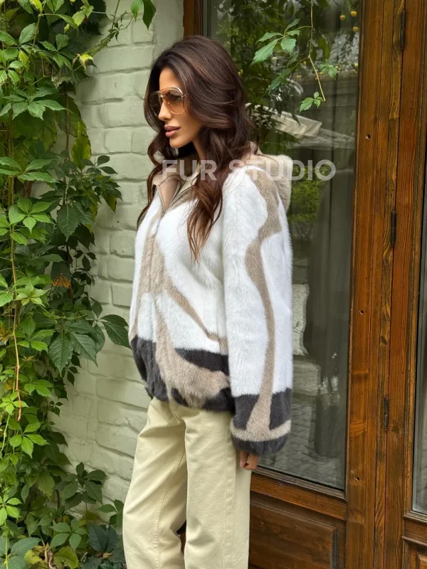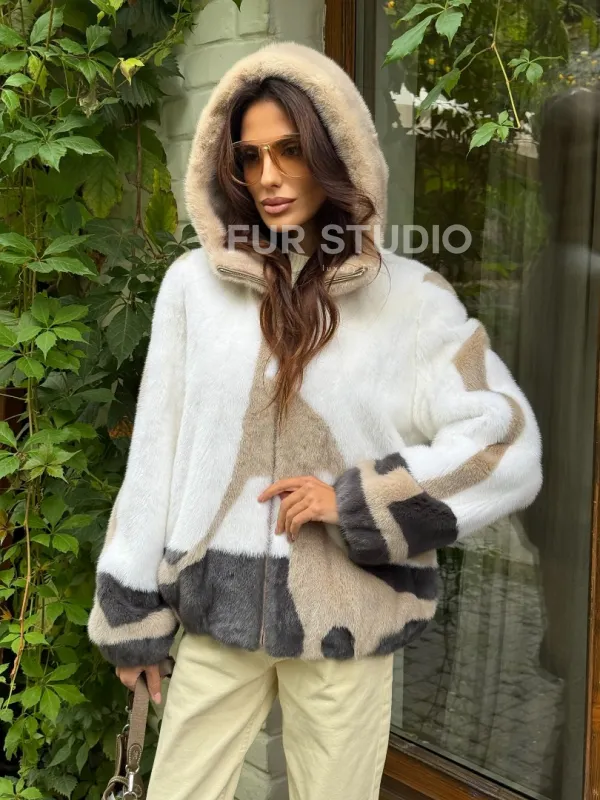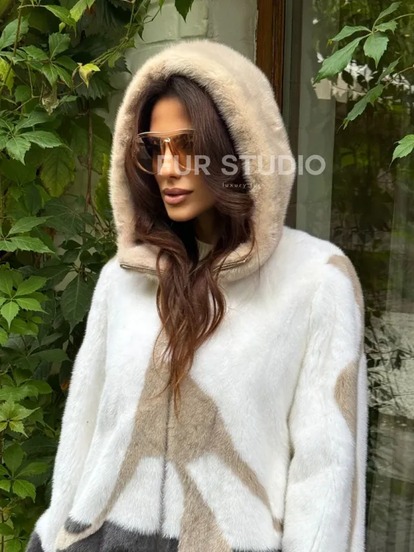Стильная норковая куртка с капюшоном 100151