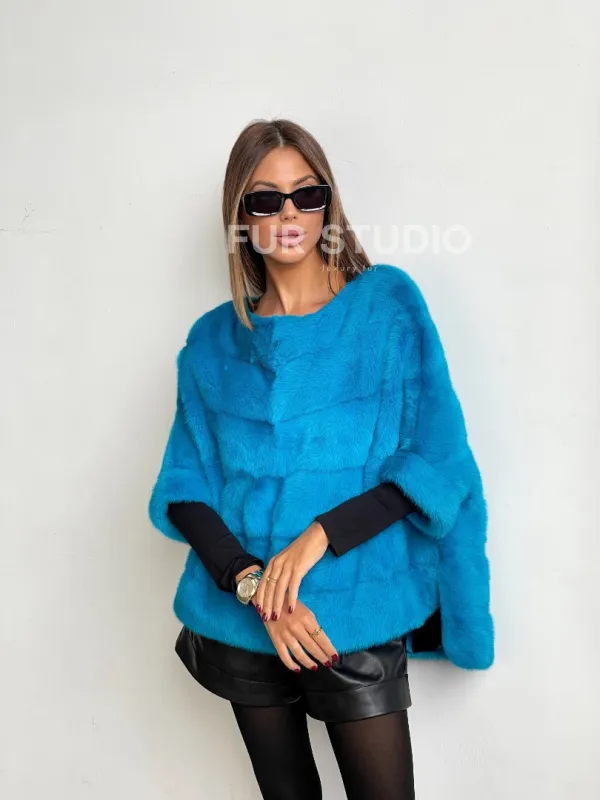 Свитер из меха норки в цвете лагуна 100096