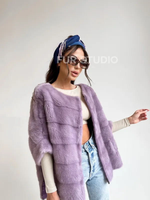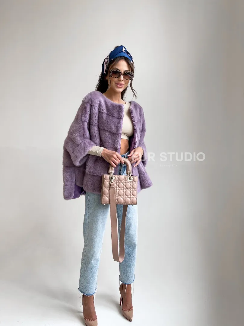 Верхняя одежда прекрасно сочетается со стилем casual и подчеркнет вашу утонченность. Рукав три четверти можно дополнить оригинальными высокими перчатками. Ваш образ в этом свитере будет приковывать восхищенные взгляды. Купить свитер из меха норки в лавандовом оттенке – выбор современных модниц, которые следят за трендом и идут в ногу со временем.