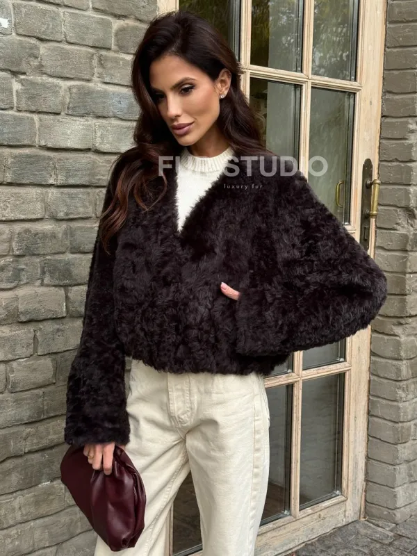 Укороченная шуба из овчины калган. Модель предлагается в размерах от 42 до 48. Оптимальная длина моделей 45-50 см подчеркивает линии вашей фигуры. Эта дубленка станет неотъемлемой частью гардероба для тех, кто предпочитает роскошь и утонченность натуральной кожи.