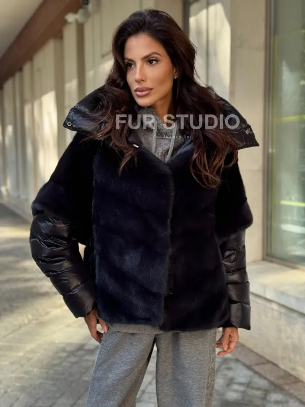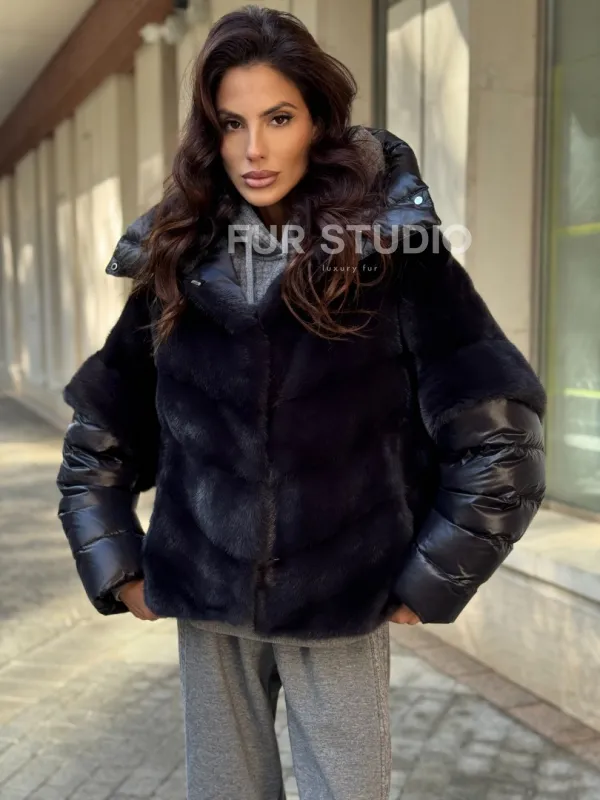 Женская меховая норковая куртка -темный графит 102280